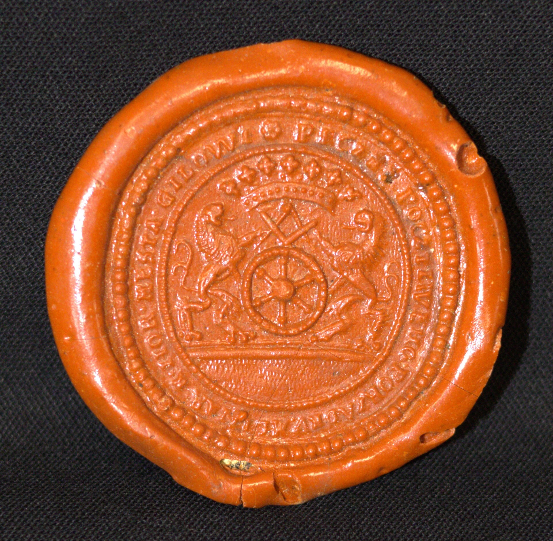 Pečetidlo královského horního města Jílového za doby Karla IV otisk.